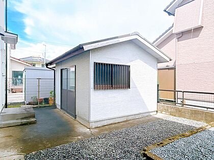 •  【リフォーム後】お庭には倉庫がございます。お庭は庭木の剪定、防草シート敷き後、砕石敷きで仕上げました。