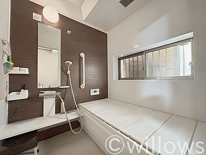 1日の疲れを癒してくれる広々とした浴室は癒しの空間。浴室換気乾燥機付きの為、中に洗濯物も干せます。