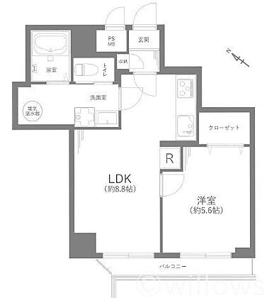 間取り図:1LDK 専有面積39.40平米、バルコニー面積5.30平米
