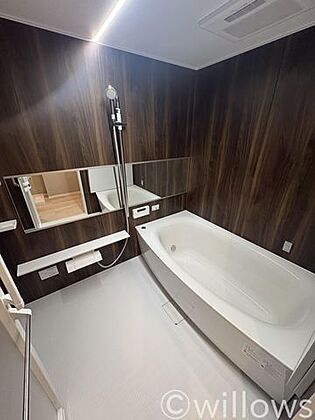 1日の疲れを癒してくれる広々とした浴室は癒しの空間。浴室換気乾燥機付きの為、中に洗濯物も干せます。