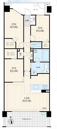間取り図:3LDK 専有面積82.09平米、バルコニー面積12.40平米ポーチ面積6.96平米