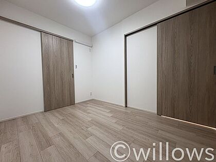 新規リフォームにより、建具とフローリングが一新された室内 。明るい色調で統一され、どの洋室 も気持ちよくお使いいただけます。豊富な収納力も魅力 。