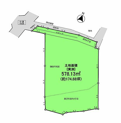 | 土地面積/坪(坪単価) | 578.13m2(実測)/175.19坪(19.90万円) | 接道 | − |
