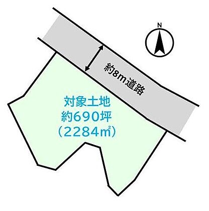 | 土地面積/坪(坪単価) | 2,284.00m2(登記簿)/692.12坪(7.70万円) | 代表的な接道 | 一方 公道 北東 7m ※詳細は備考欄をご確認ください |
