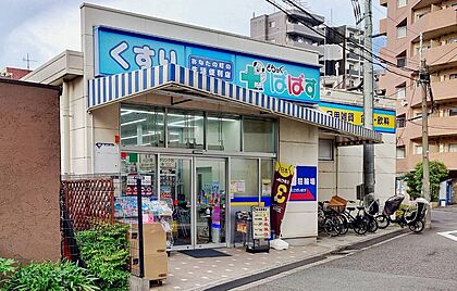 徒歩8分にあるドラッグストアは23時まで営業中です。