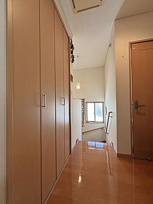 2階廊下に収納あり!収納内に窓があるので湿気対策もバッチリ☆