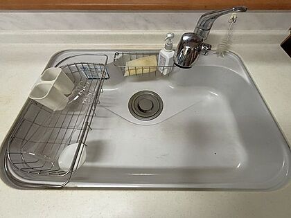 コップなどを乾かすカゴ付き!カウンターキッチンのため、シンク内に食器が溜まっていても、リビングから見えにくい!