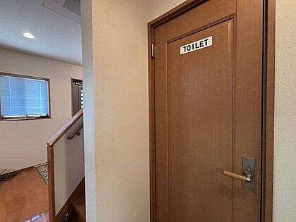 階段横にトイレがあります!どこのお部屋にいてもお手洗いに行きやすい位置です。