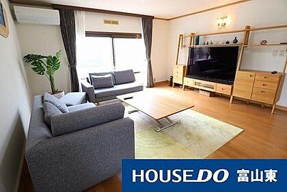 テレビボード、ソファー、ローテーブルを設置してもこの広さ!リビングで家族団らんの時間をお楽しみください(^^♪