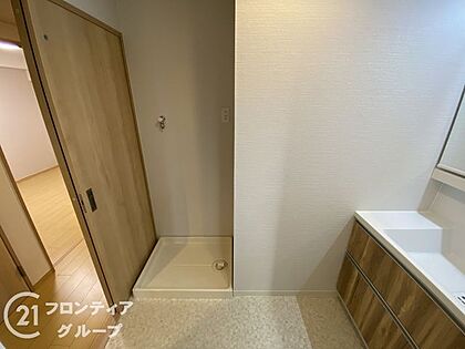 明るく開放的な洗面空間は、家族みんなが使いやすい配置とゆとりのある設計。洗濯機置き場も近く、家事の効率もアップ。落ち着いた色調と使いやすさを兼ね備えた空間で、日々の暮らしをスマートに演出します。