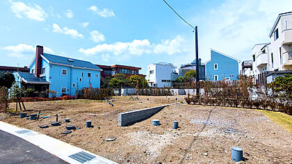 【接道】 ( 公道 南東 4.5m ) ※敷地面積に地役権設定部分32.85m2含む ※ゴミ置場持分:4.08m2×1/5有 ※鎌倉市指令開第2号 旧鎌倉市街地の由比ガ浜四丁目・5区画の開発分譲地です☆ 由比ヶ浜の海まで徒歩2分、江ノ電「和田塚」駅まで徒歩6分、ビーチからも近く鎌倉駅も徒歩圏☆ マリンスポーツを楽しみたい方、セカンドハウスとしてもおすすめのロケーションです☆ A区画・B区画は建築条件無しでご紹介可能、ゆったりとした敷地に |