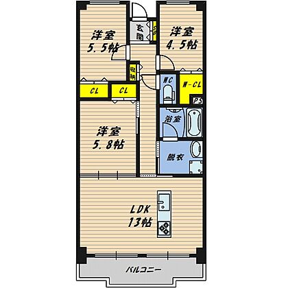 | 間取り | 3LDK | 専有面積 | 65.82m2(壁芯) |