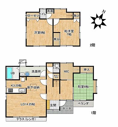 【間取図】1階にはリビング以外に居室があり、2階にもトイレございます。