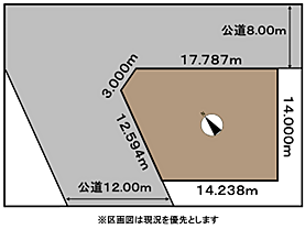 | 土地面積/坪(坪単価) | 240.05m2(登記簿)/72.74坪(31.20万円) | 代表的な接道 | 角地 公道 北東 8m、北西 12m ※詳細は備考欄をご確認ください |