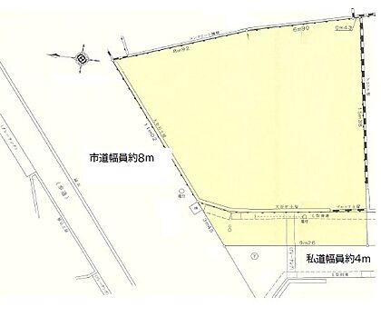 【接道】 角地 ( 公道 北西 8m ) ( 私道 西 4m ) ■設備全て引込無し ■前面道路配管有 第一種高度地区 |
