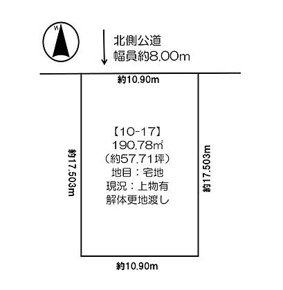 | 土地面積/坪(坪単価) | 190.78m2(登記簿)/57.81坪(13.50万円) | 代表的な接道 | 公道 北 8m ※詳細は備考欄をご確認ください  |