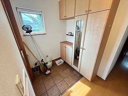 •  室内(2025年9月)撮影◎本日案内可能◎家族の靴をたっぷり収納できるシューズボックス付き♪お出かけ前の身だしなみも確認できる全身鏡付きです。