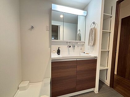 身だしなみを整えるのに重宝するシャワー付きの洗面台です♪洗面台に収納もあるため、整頓しやすいですね!