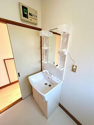 【10/16撮影リフォーム販売中】洗面台の写真です。洗面台は交換を行う予定です。また、壁・天井はクロス張り替えを行います。白を基調とした清潔感のある空間になりそうですね。