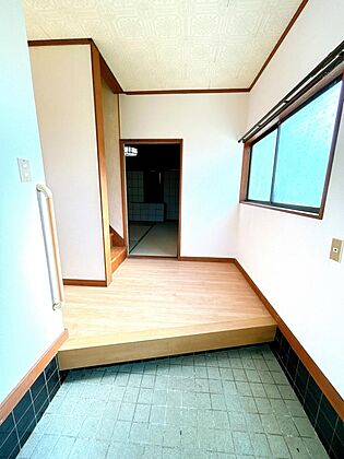 【10/16撮影リフォーム中】玄関内部の写真です。ポーチタイルはクリーニング、シューズボックスは新設する予定です。します。コの字型で鏡付きのものを設置いたしますので、靴もしっかり収納できます。
