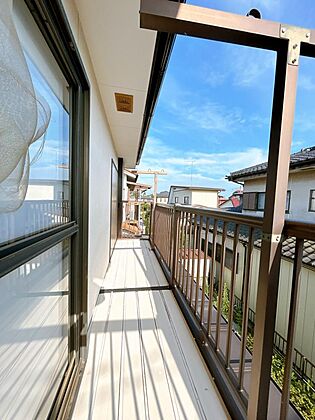【10/16現在リフォーム中】ベランダの写真です。こちらは床板塗装を行います。南面のベランダですので陽当たりがよく、お布団なども乾きそうですね。