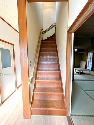【10/16現在リフォーム中】階段の写真です。踏板と手すりはクリーニングを行い、ノンスリップの新設を行う予定です。安全に生活ができるように配慮し、リフォームを行います。