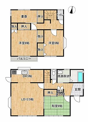 【リフォーム後間取り】3SLDKの住宅、南東向きで陽当たり良好です。書斎もありますので趣味の部屋として利用できますね。