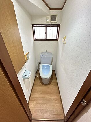 【内外装リフォーム予定】2階トイレの写真です。トイレの交換、クロスの張替え、クッションフロアーの張替えを行います。2階にもトイレがあると1階に降りなくてすみますので便利ですね。