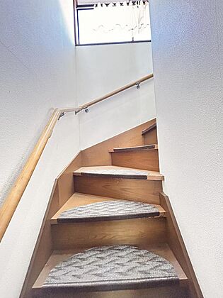 【内外装リフォーム予定】階段の写真です。手摺の交換、ノンスリップの設置を行います。安全に上り下りができるようにリフォームします。