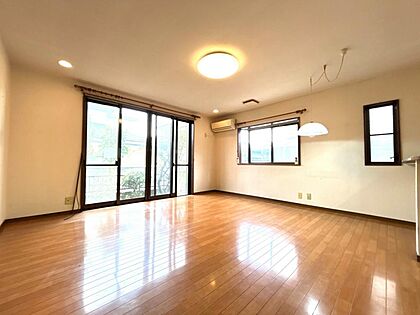 【内外装リフォーム予定】リビングの写真です。クロス張替、フローリングの重ね張り、照明の交換を行います。南側に窓がありますので明るい日差しが差し込むリビングです。