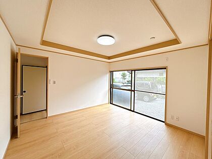 【リフォーム完成】1階中央洋室の別角度写真です。南側には大きな掃き出し窓があり、陽当たりの良い暖かいお部屋になりそうですね。