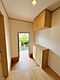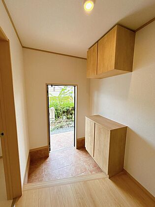 【リフォーム完成】玄関内部の別角度写真です。二の字型のシューズボックスを設置してるため、ちょっとしたインテリアを置くこともできますね。