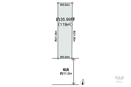 | 土地面積/坪(坪単価) | 119.00m2(登記簿)/36.06坪(69.30万円) | 代表的な接道 | 一方 公道 南 11m ※詳細は備考欄をご確認ください |