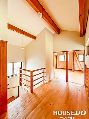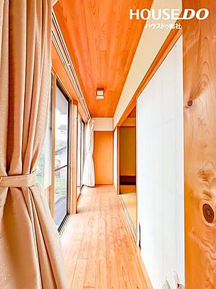 木の香りに包まれた廊下。光が差し込み、どこを歩いても温もりを感じられる住まいです。