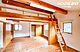 天窓から光が降り注ぐ明るい空間。木の梁が美しく、開放感に満ちたお家です。