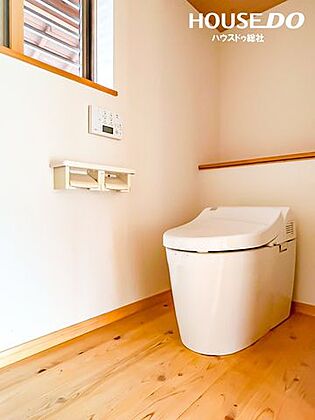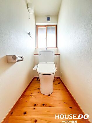 トイレは2か所あります。いずれも明るく清潔感のあるトイレは、窓付きで換気も安心。トイレや洗面所まで、どこも木の温もりとシンプルなデザインで居心地の良い空間に設計されています。