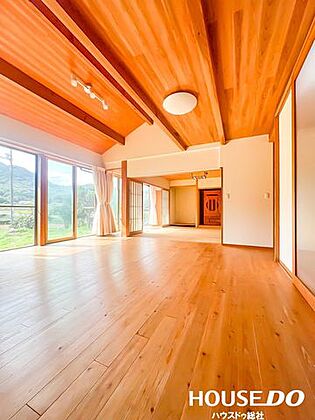 光あふれるリビングは、家族が自然と集まる心地よい空間。窓の向こうの景色が日常をやさしく彩ります。この明るさと開放感を、ぜひ現地で体感してください。