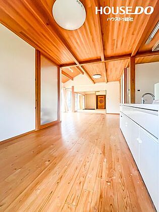 家族が自然と集まる広々LDK。木目の温かさと光の調和が心地よく、ゆっくり流れる時間を感じられます。