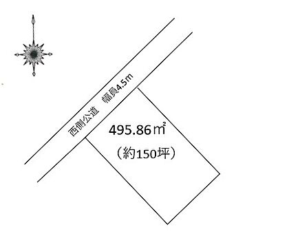 | 土地面積/坪(坪単価) | 495.86m2/150.26坪(8.50万円) | 代表的な接道 | 西 4.5m ※詳細は備考欄をご確認ください |