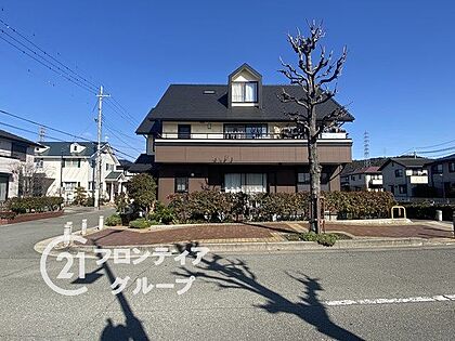 静かな住宅街にたたずむ重厚感あるお家。落ち着いた色合いが素敵ですね。