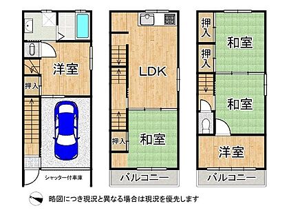 シャッター付きビルドインガレージを備えた5LDKの間取りです!