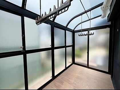 サンルーム。雨の日や花粉が飛ぶ季節のお洗濯に助かります♪