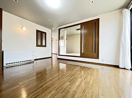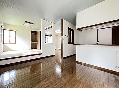 広々空間のリビング。リビング横に和室があり、お子様の遊び場やお昼寝場所にもいいですね♪