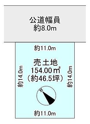 前面道路は北東側に広がり、約11mのゆとりある間口が魅力。開放感を感じながら、駐車や建物配置にも余裕を持たせられる土地です。光や風を取り込みやすく、理想の住まいを自由に描けるロケーションです。