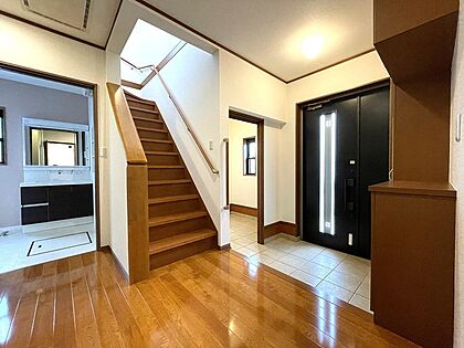 玄関ホールから階段や洗面室にかけて2024年3月に内装が一新されています。フローリング、クロス、天井など全面的に新しい内装でとても綺麗です。
