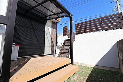 敷地内にある鉄筋コンクリート造シャッターガレージの上部に設けられたルーフバルコニーです。開放感があり見晴らしもありますのでバーベキューや日光浴など愉しめそうです。