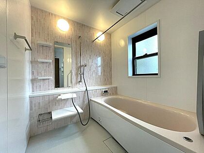 1818サイズのワイドなユニットバスは2024年3月に新調されました。ご覧の通り、使用感が少なく快適にご使用いただけます。もちろん浴室暖房換気乾燥機が備わります。