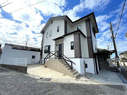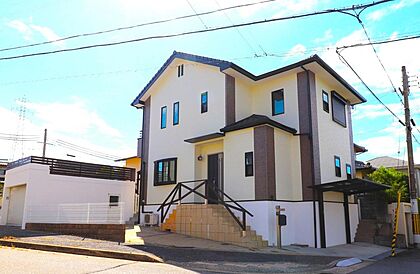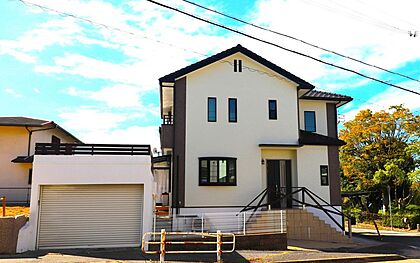 2008年築ハウスメーカー施工の木造2階建てです。角地で開放感に恵まれた立地でオシャレな外観がとても映えます。50坪超の敷地にはカースペース2台分にシャッターガレージが備わります。