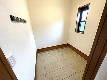 スペースに余裕のある玄関内はとても優雅な住空間です。両サイドに大型のシューズボックスと広々とした土間収納が備わります。ニッチがオシャレで、土間タイルも美しく、上品な玄関フロアです。