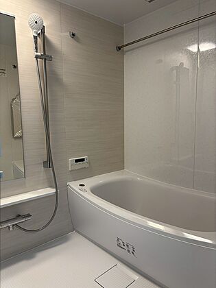 【浴室】追焚機能付きで、いつでも快適なバスタイムを楽しめます。浴室換気乾燥暖房機が備わっており、雨の日や深夜でも洗濯物をすっきりと乾かせます。